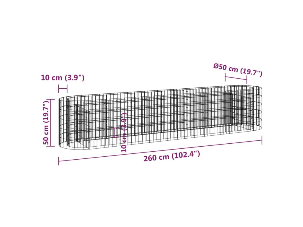 Gabionový vyvýšený záhon pozinkované železo 260 x 50 x 50 cm 152026