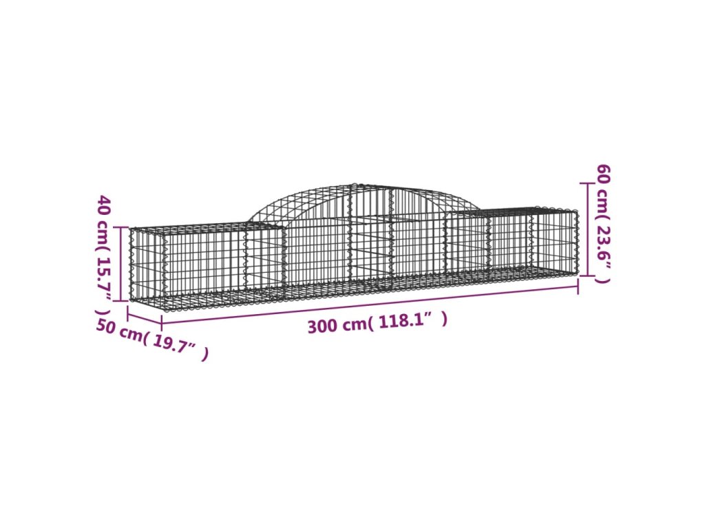 Klenuté gabionové koše 17 ks 300x50x40/60 cm pozinkované železo 3146660
