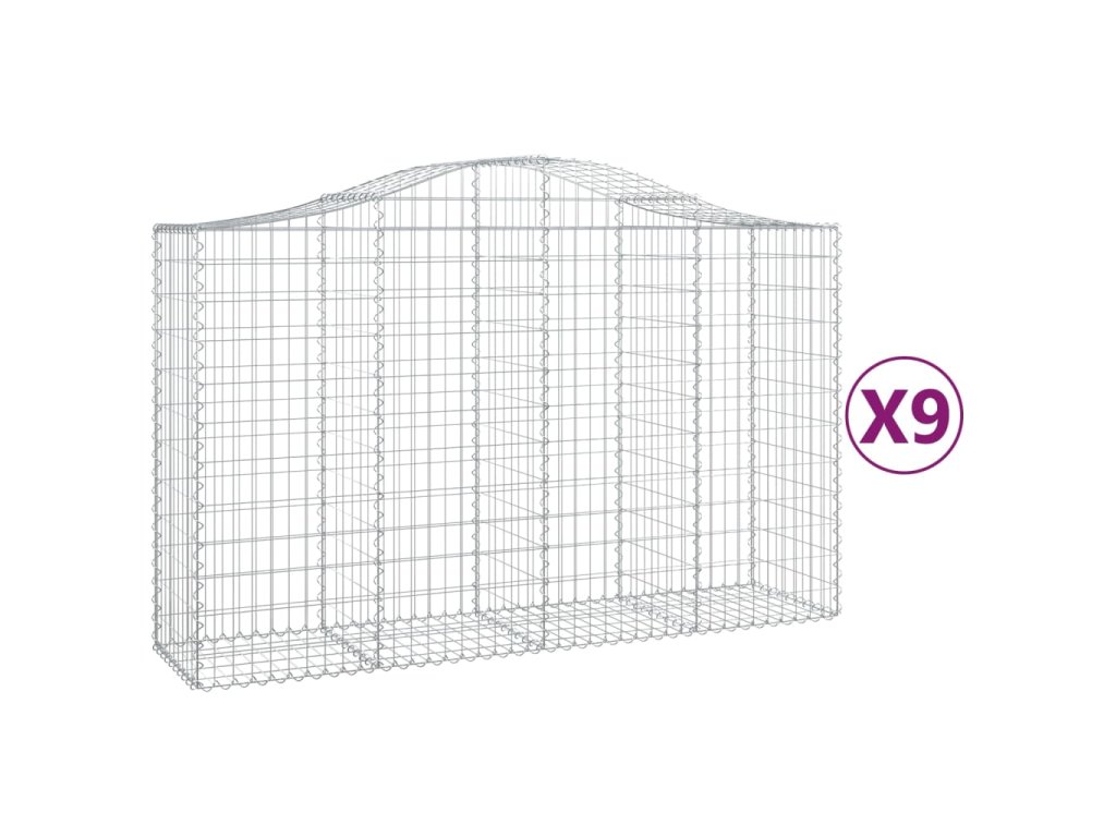 Klenuté gabionové koše 9 ks 200x50x120/140cm pozinkované železo 3145668