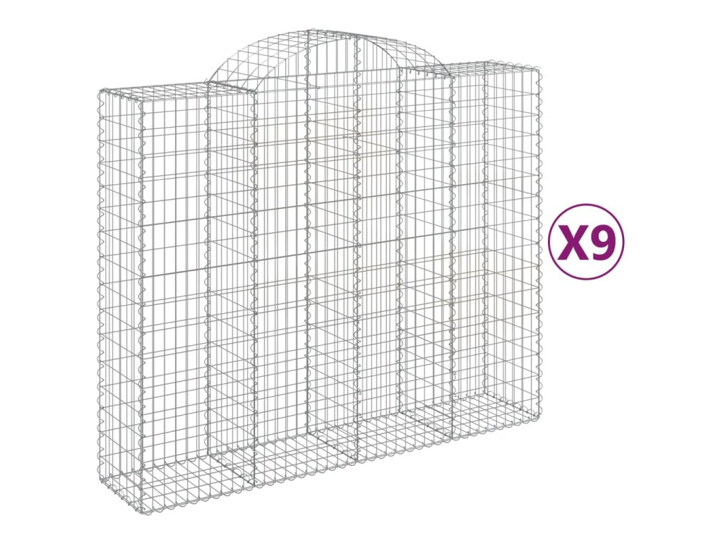 Klenuté gabionové koše 9 ks 200x50x160/180cm pozinkované železo 3146390