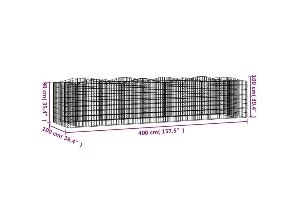 Klenutý gabion vyvýšený záhon 400x100x100 cm pozinkované železo 153555
