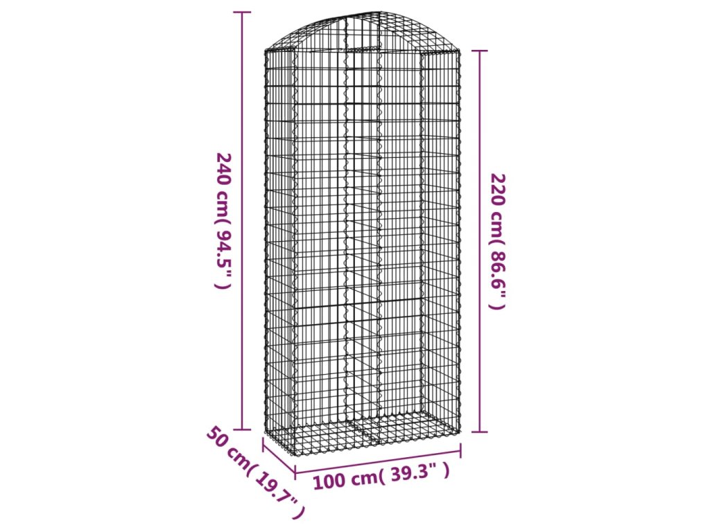 Klenutý gabionový koš 100 x 50 x 220/240 cm pozinkované železo 153441
