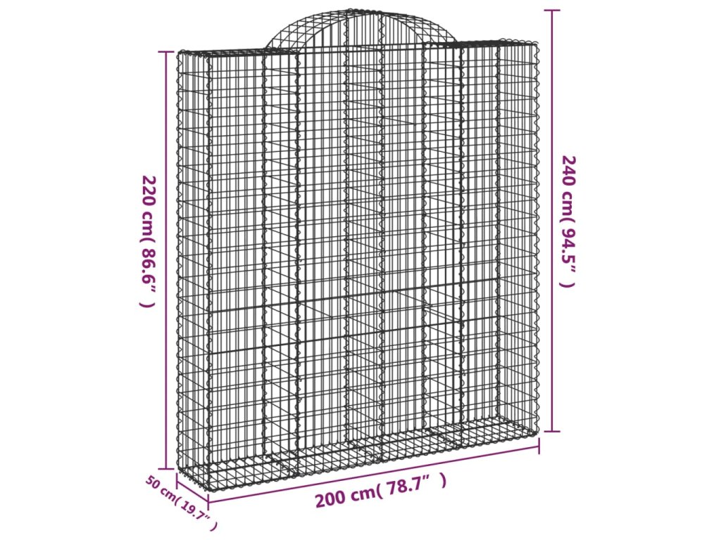 Klenutý gabionový koš 200 x 50 x 220/240 cm pozinkované železo 153501