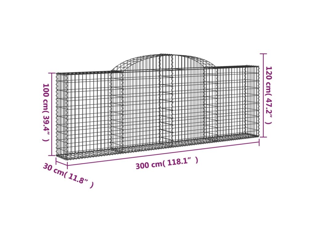 Klenutý gabionový koš 300 x 30 x 100/120 cm pozinkované železo 153505