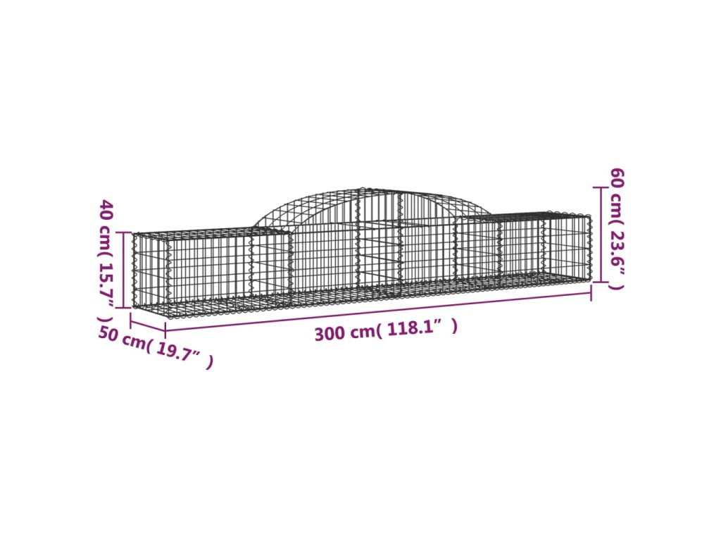 Klenutý gabionový koš 300 x 50 x 40/60 cm pozinkované železo 153512