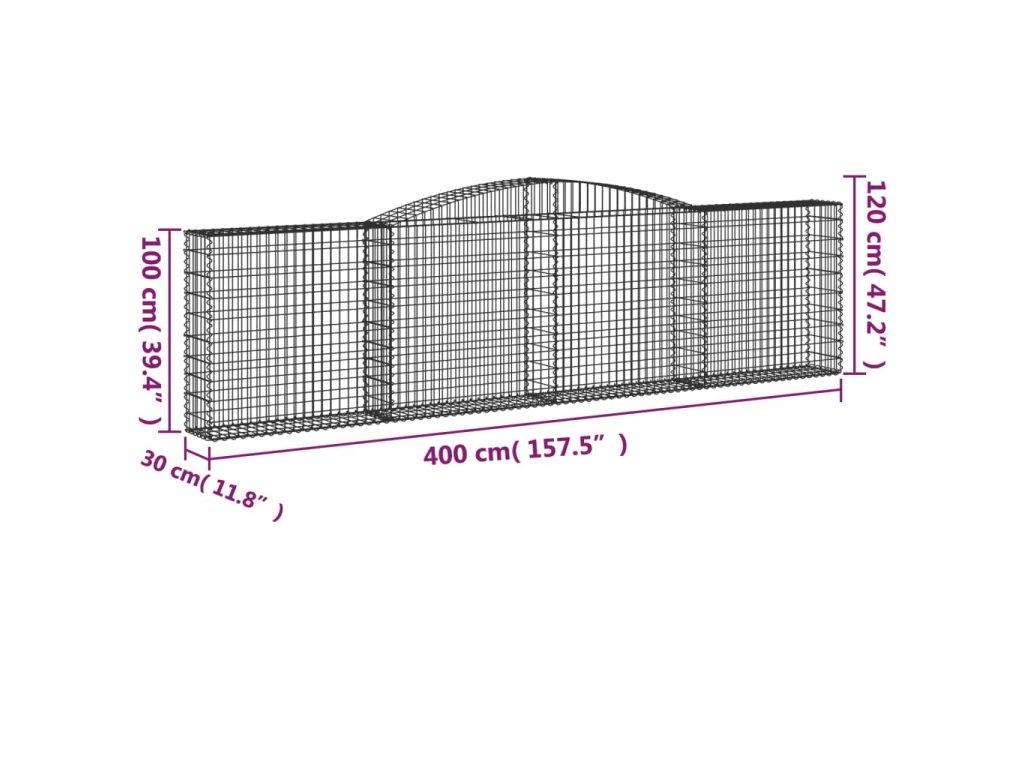 Klenutý gabionový koš 400 x 30 x 100/120 cm pozinkované železo 153525