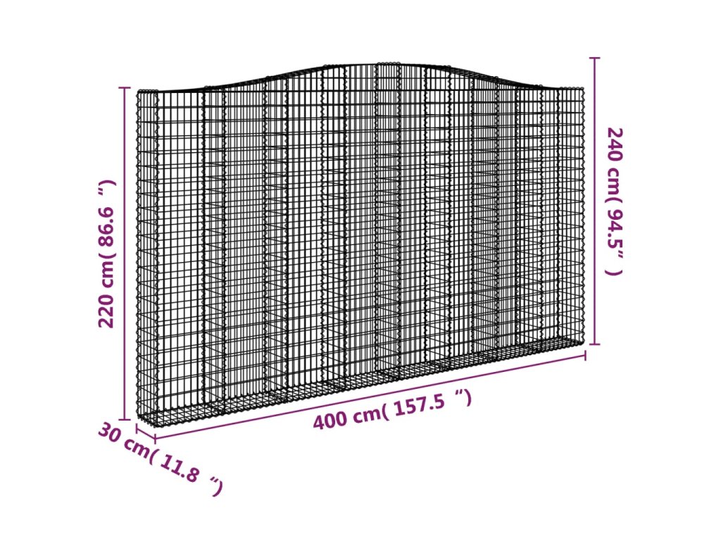 Klenutý gabionový koš 400 x 30 x 220/240 cm pozinkované železo 153411
