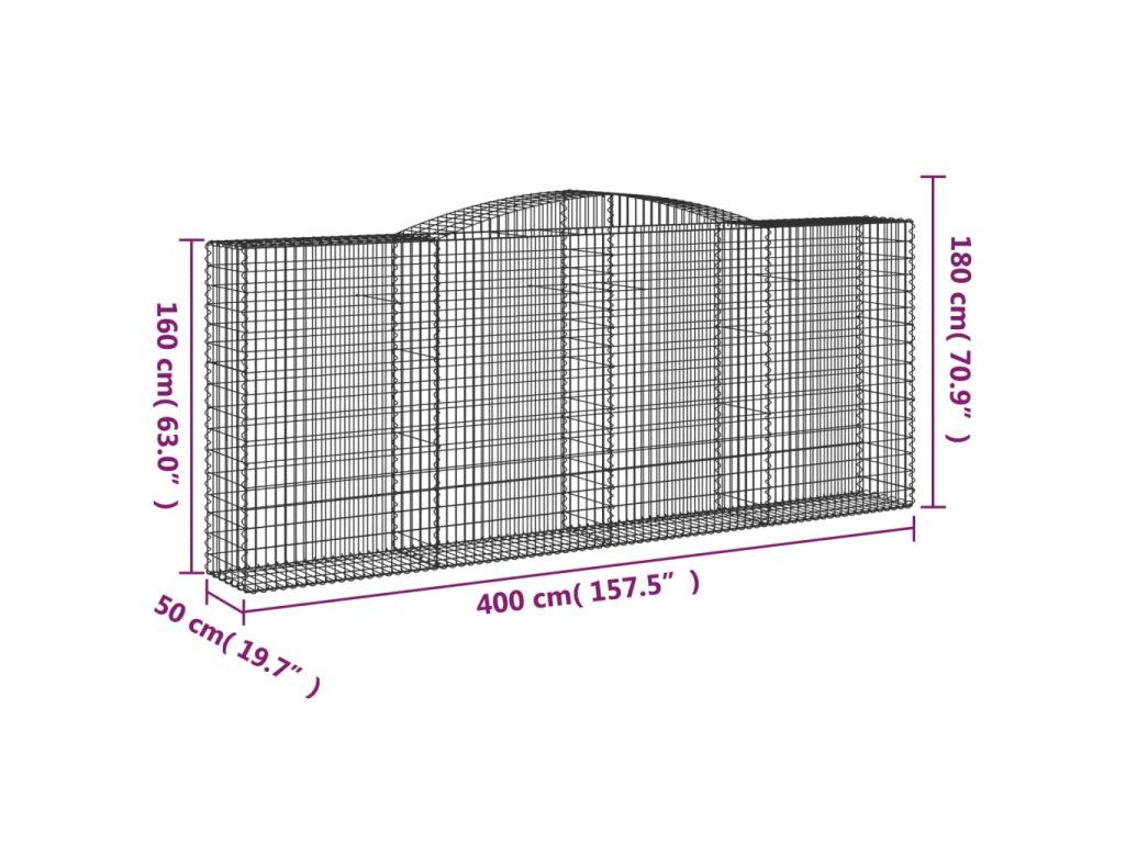 Klenutý gabionový koš 400 x 50 x 160/180 cm pozinkované železo 153538