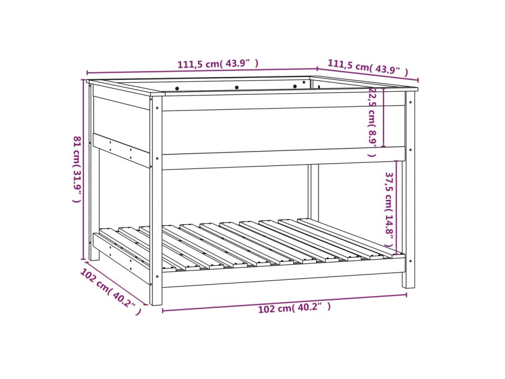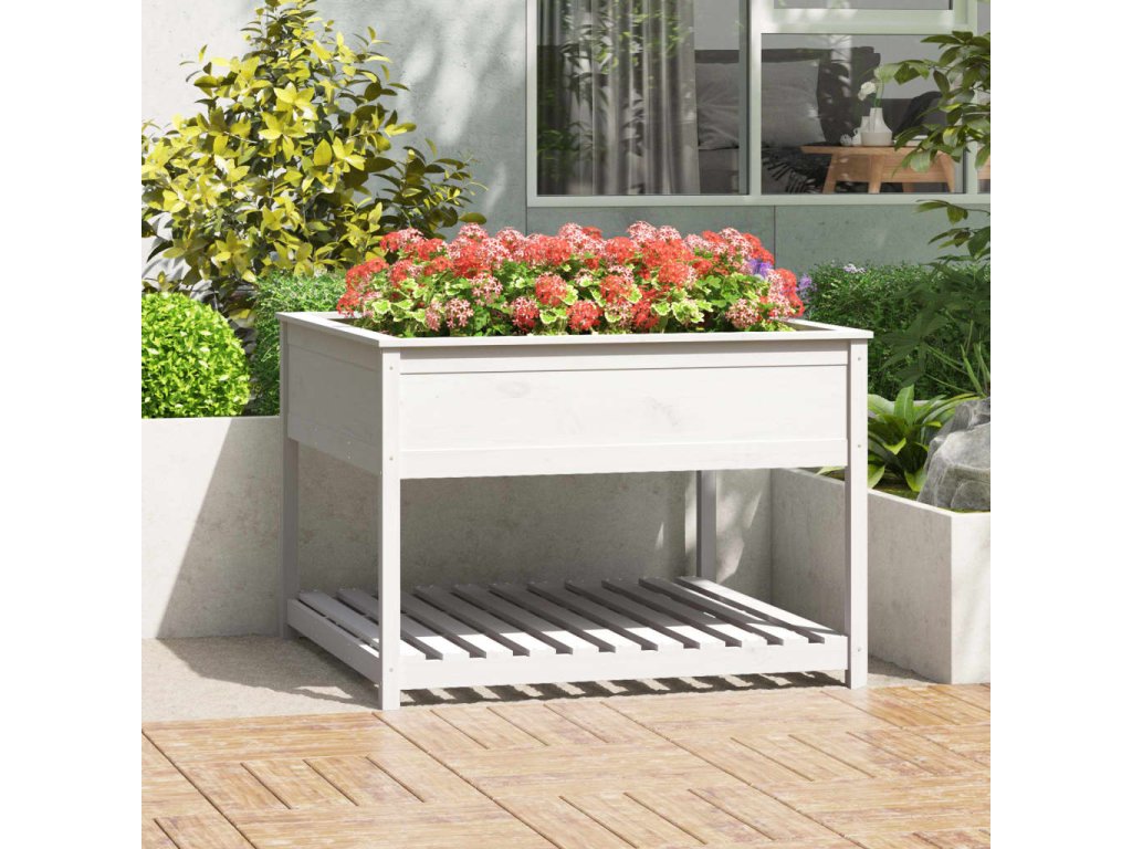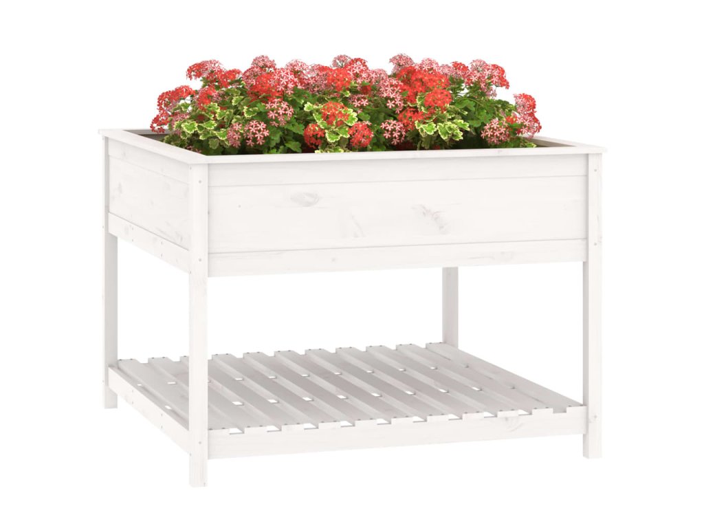 Truhlík s policí bílý 111,5x111,5x81 cm masivní borové dřevo 823802