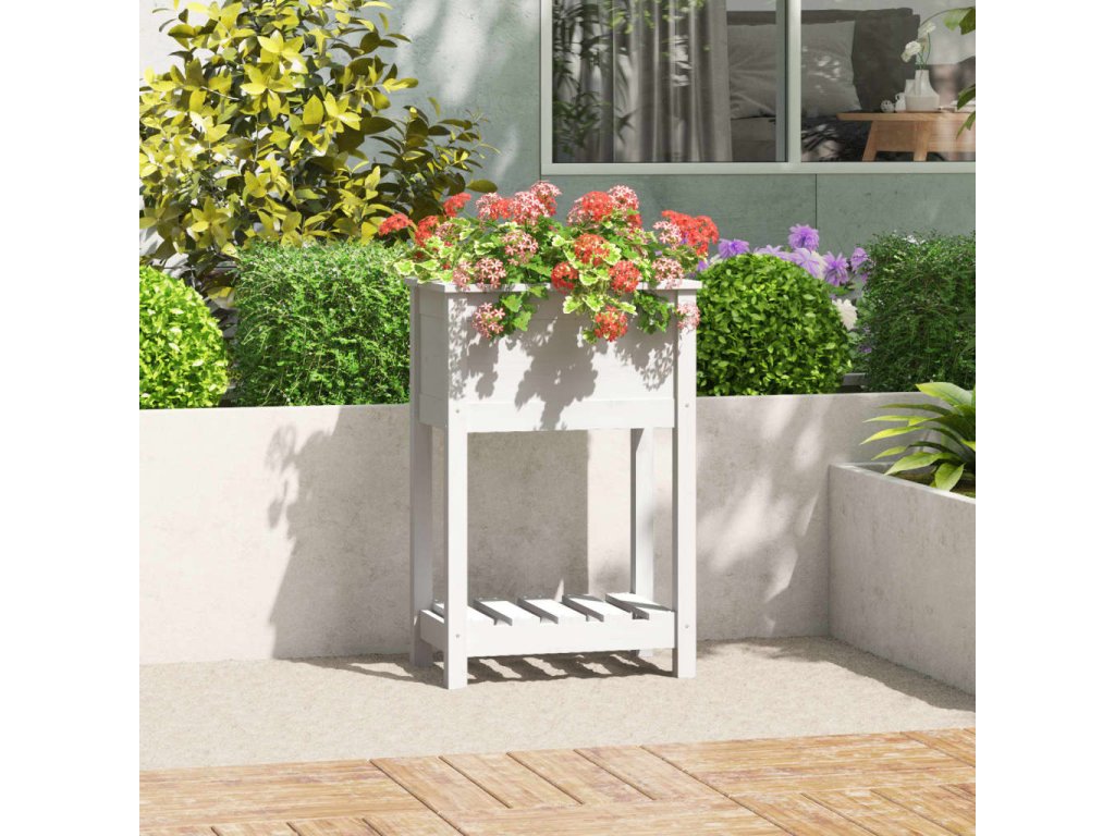 Truhlík s policí bílý 54 x 34,5 x 81 cm masivní borové dřevo 823753