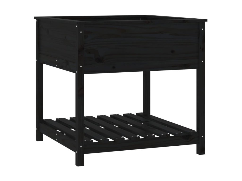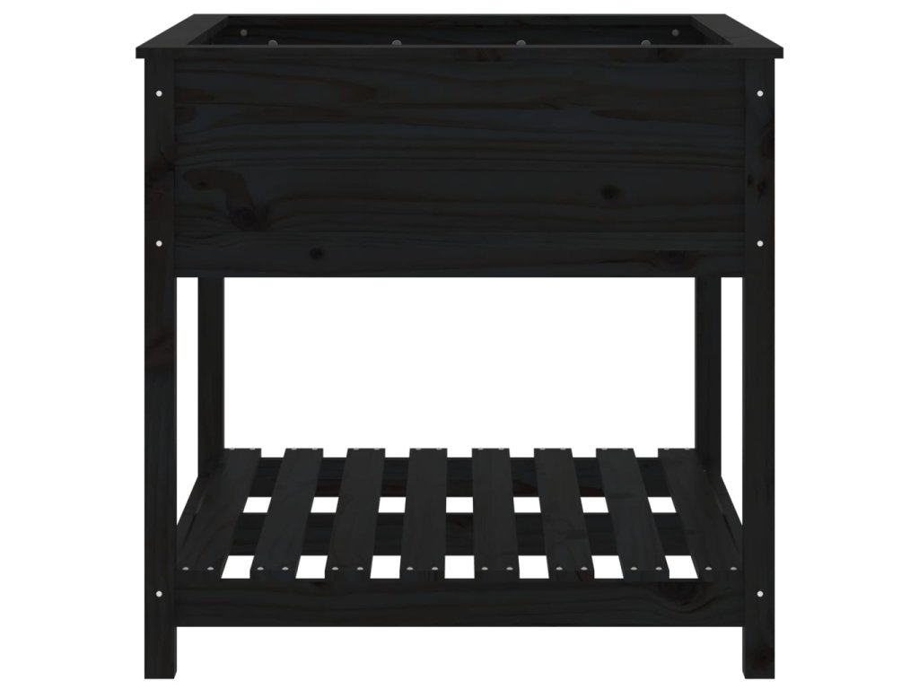 Truhlík s policí černý 82,5 x 82,5 x 81 cm masivní borové dřevo 823798