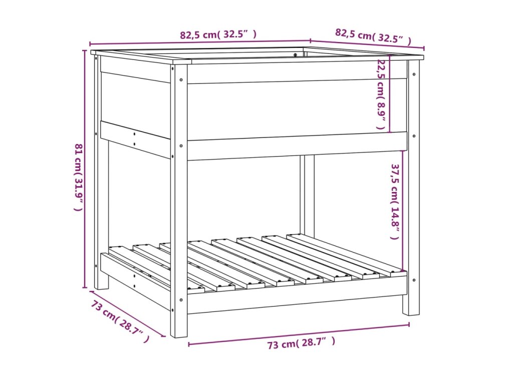 - Stabilní rám: Dřevěný rám zahradního květináče zajišťuje mimořádnou pevnost a stabilitu.