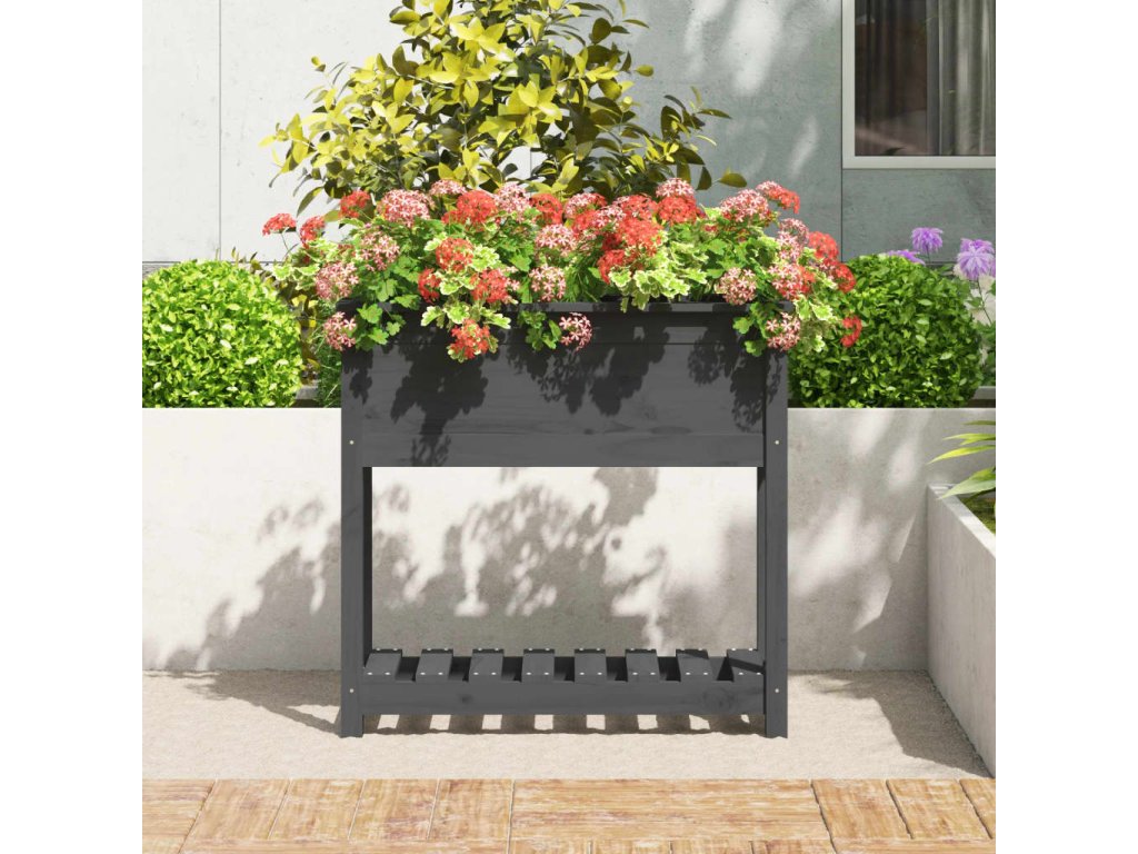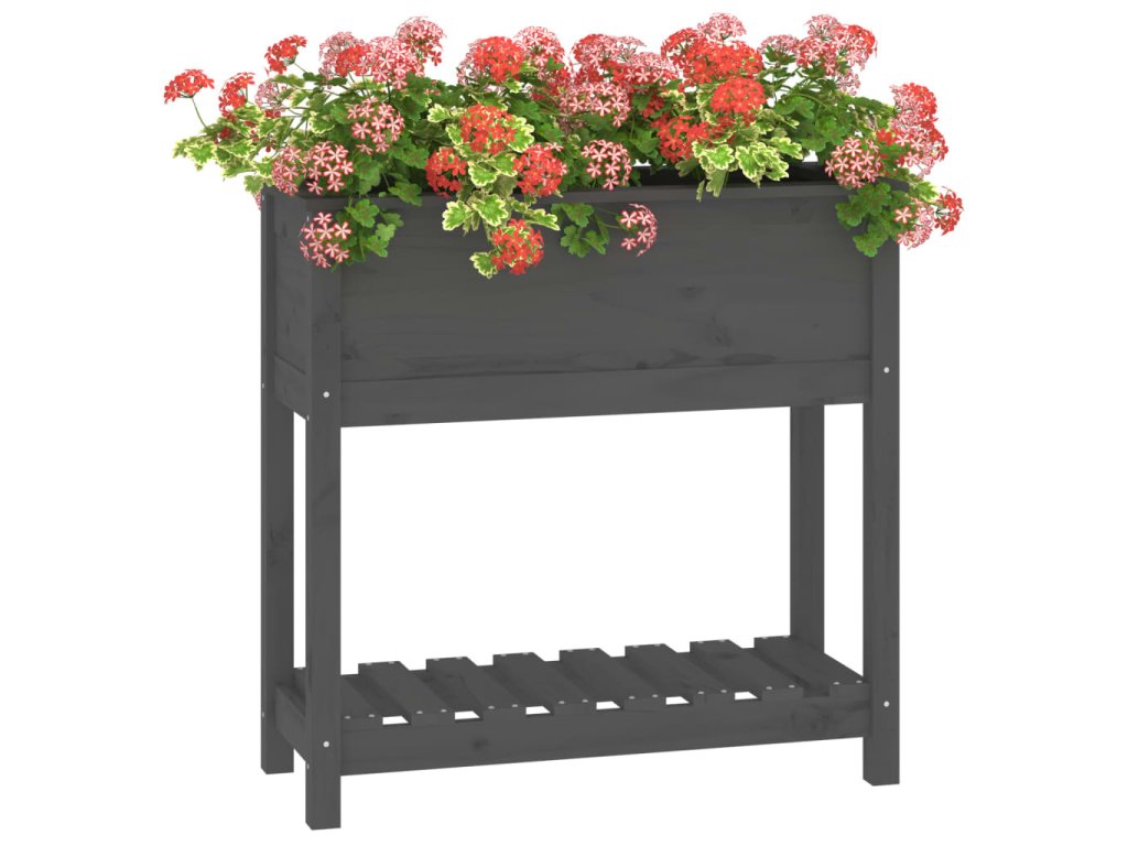 Truhlík s policí šedý 82,5 x 34,5 x 81 cm masivní borové dřevo 823761