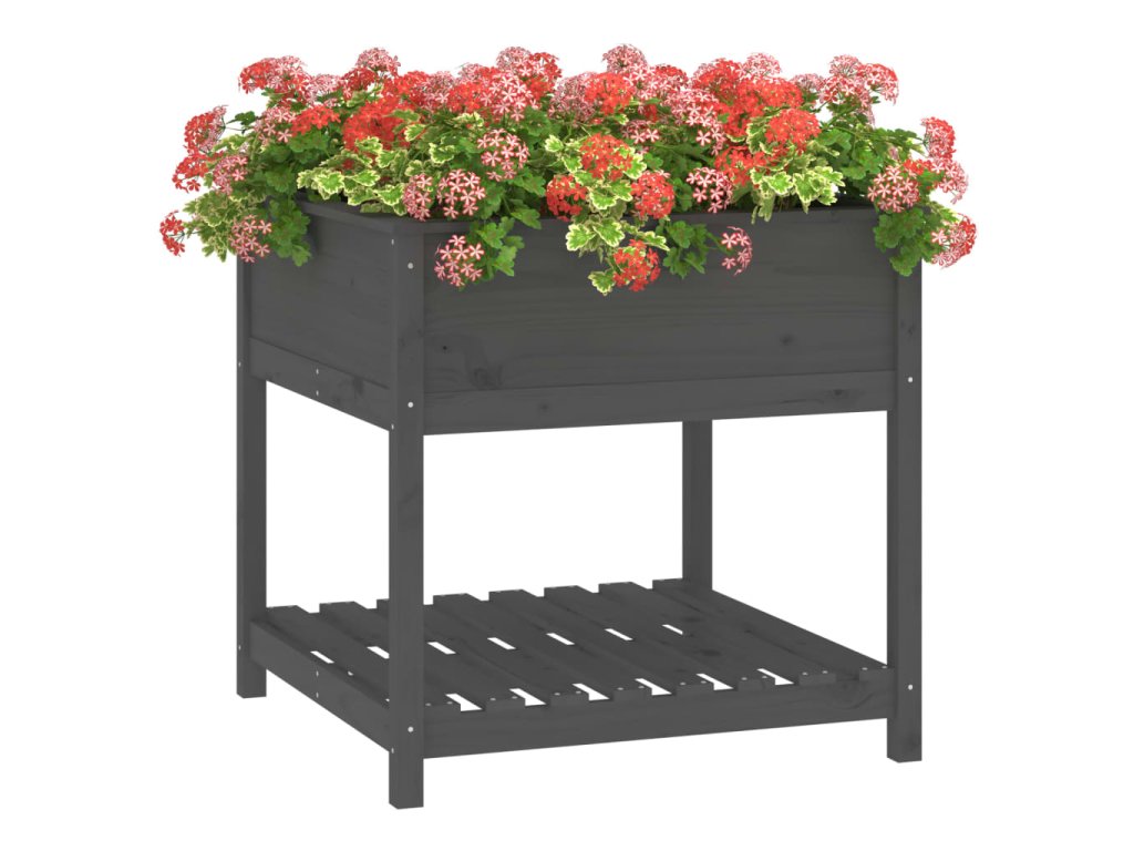 Truhlík s policí šedý 82,5 x 82,5 x 81 cm masivní borové dřevo 823796