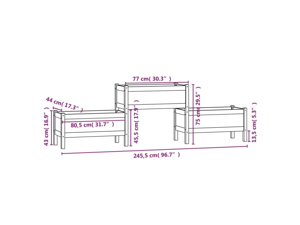Truhlík šedý 245,5 x 44 x 75 cm masivní borové dřevo 822254
