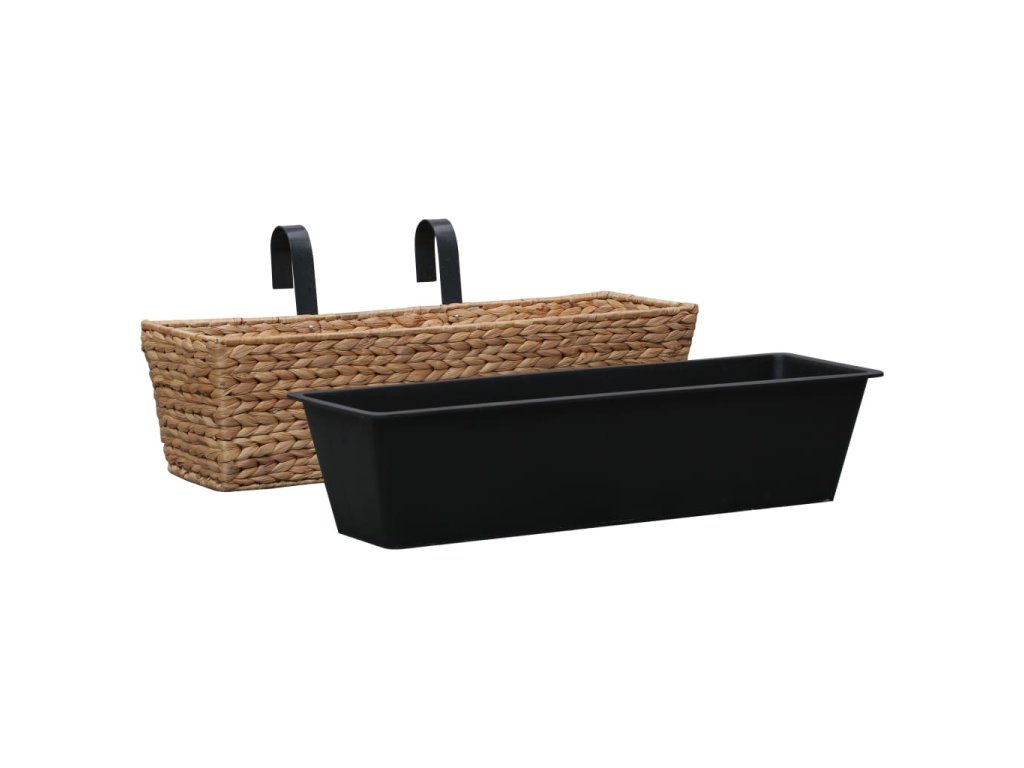 Tato sada hezkých truhlíků obsahuje 2 truhlíky zhotovené z vodního hyacintu a 2 vyjímatelné květináče.
