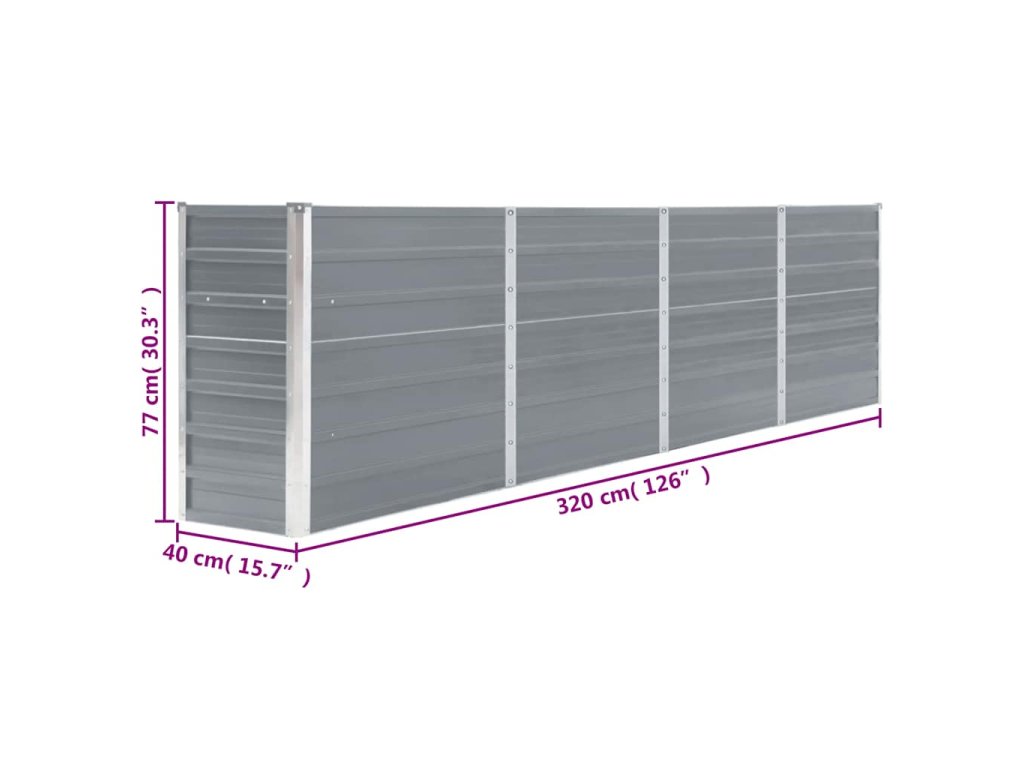 Vyvýšený záhon 320 x 40 x 77 cm pozinkovaná ocel šedý 47048