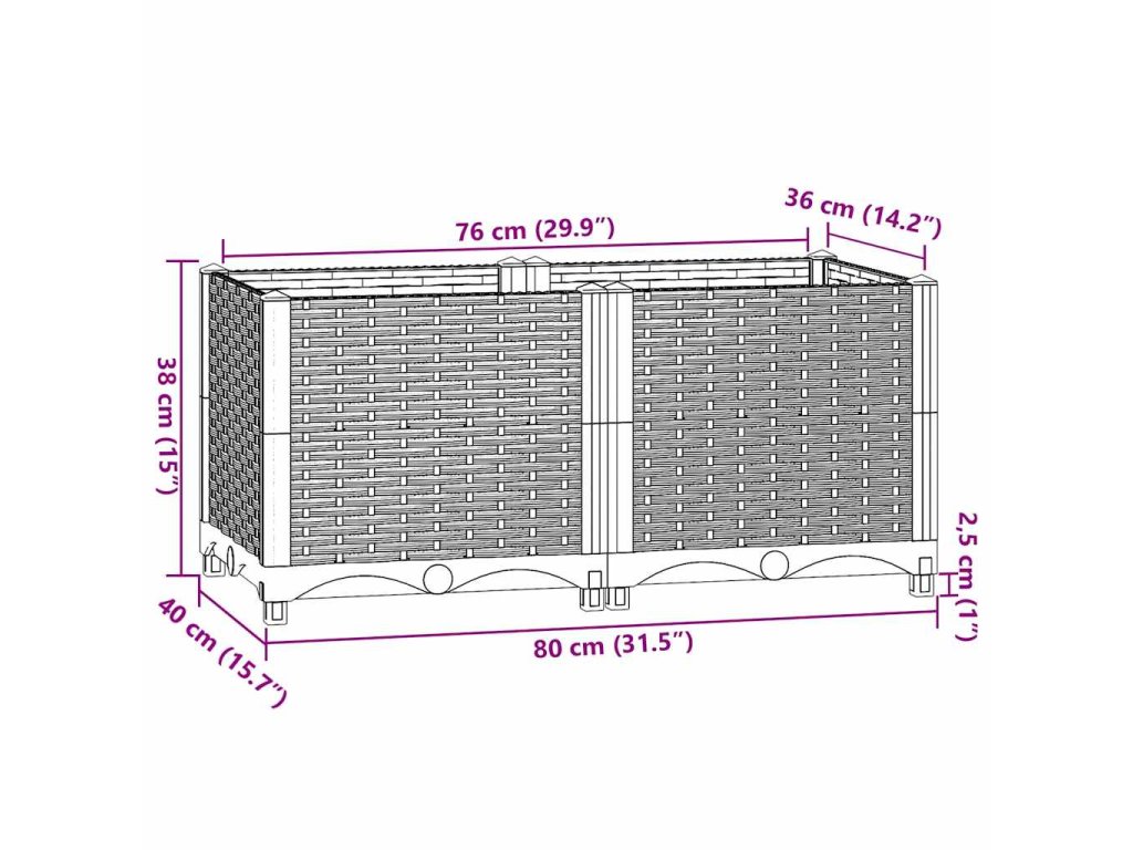 Vyvýšený záhon 80 x 40 x 38 cm polypropylen 316516