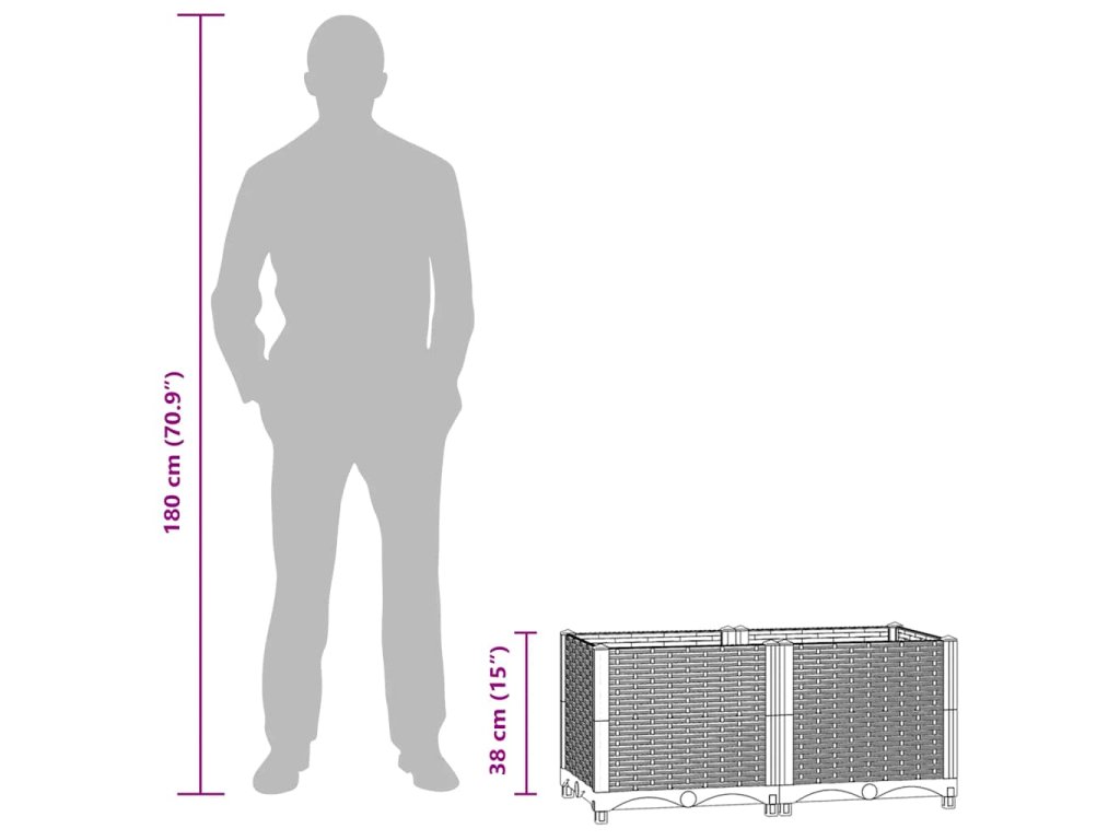 Truhlík je vyrobený z polypropylenu, takže je robustní, má dlouhou životnost a hodí se pro venkovní použití. Je dostatečně hluboký a široký, aby pojal velké množství půdy, a vejde se vám do něj celá řada rostlin, bylinek, květin i zeleniny. Vytvořte svým rostlinám ideální prostředí s tímto elegantním vyvýšeným záhonem!