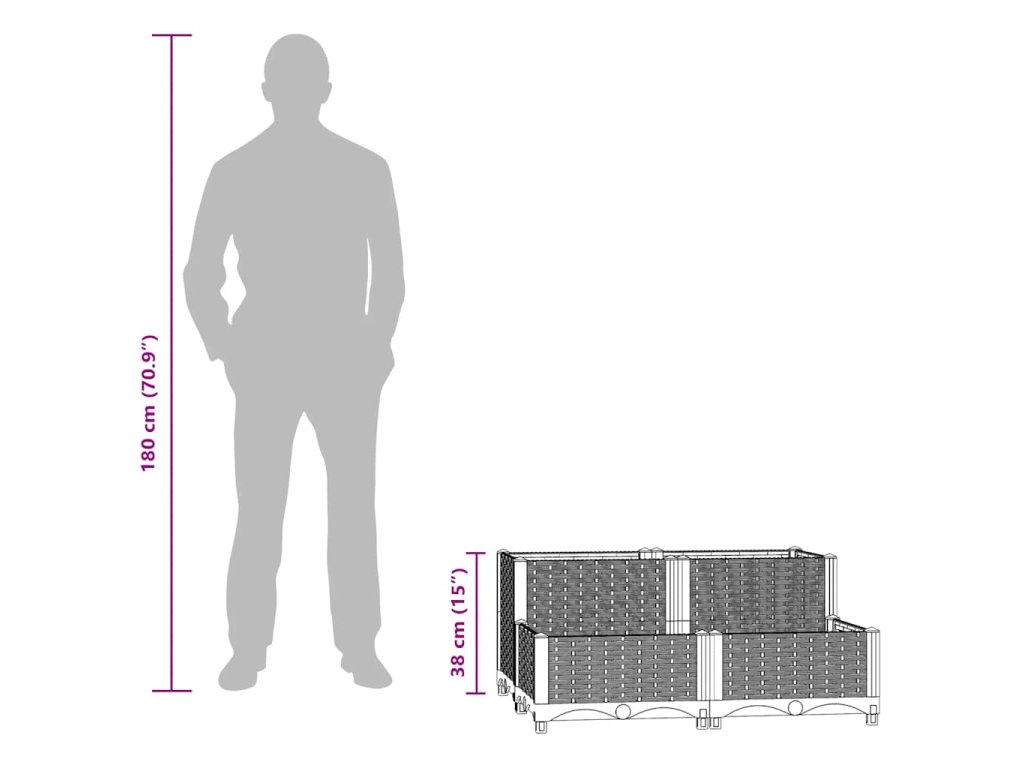 Truhlík je vyrobený z polypropylenu, takže je robustní, má dlouhou životnost a hodí se pro venkovní použití. Je dostatečně hluboký a široký, aby pojal velké množství půdy, a vejde se vám do něj celá řada rostlin, bylinek, květin i zeleniny. Vytvořte svým rostlinám ideální prostředí s tímto elegantním vyvýšeným záhonem!