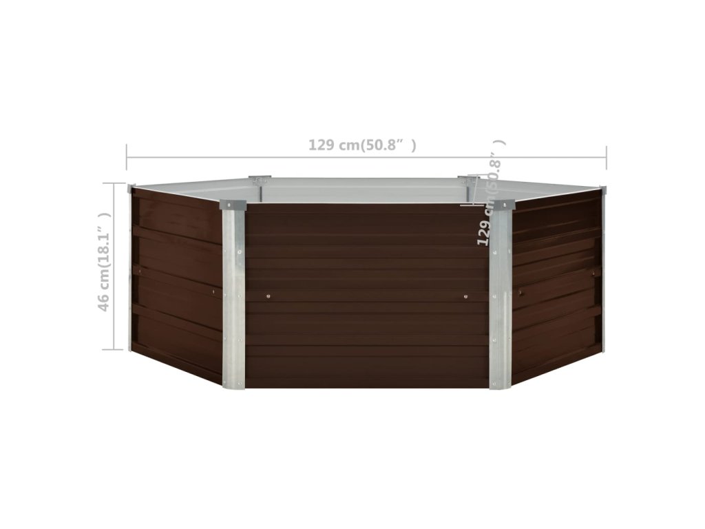 Vyvýšený záhon hnědý 129 x 129 x 46 cm pozinkovaná ocel 45710