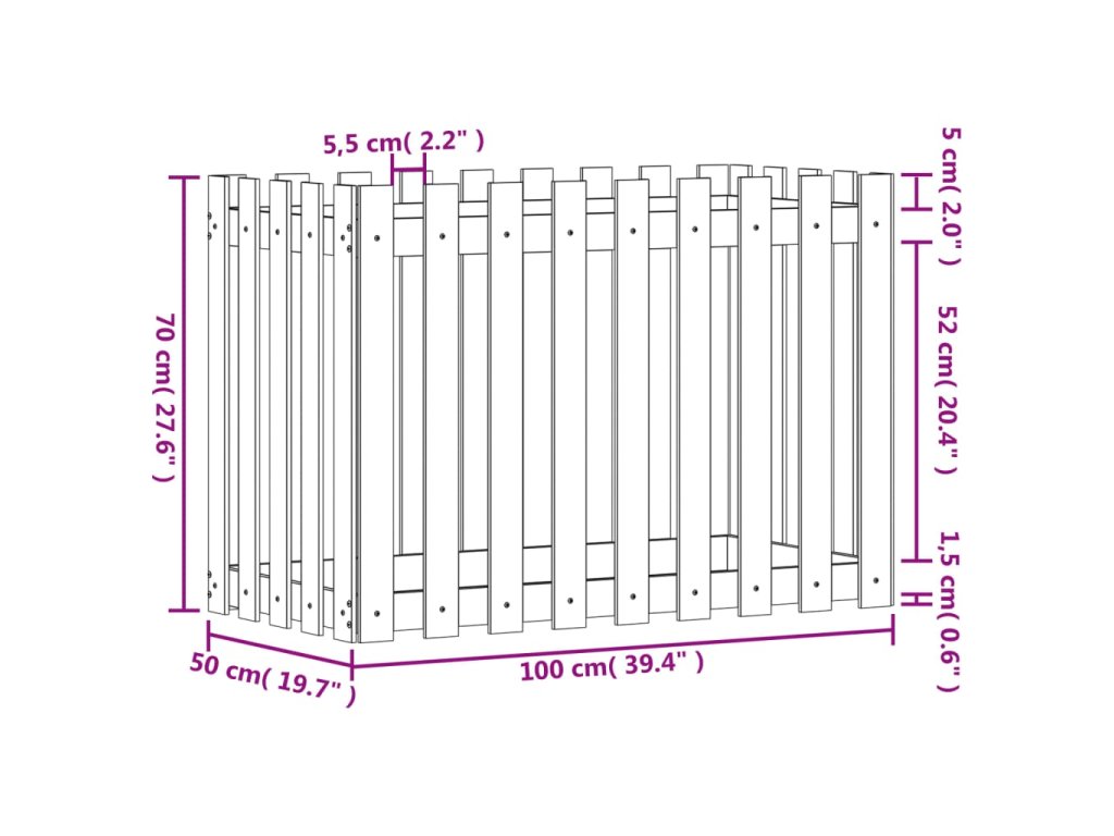 Vyvýšený záhon plotový design 100 x 50 x 70 cm masivní borovice 832482