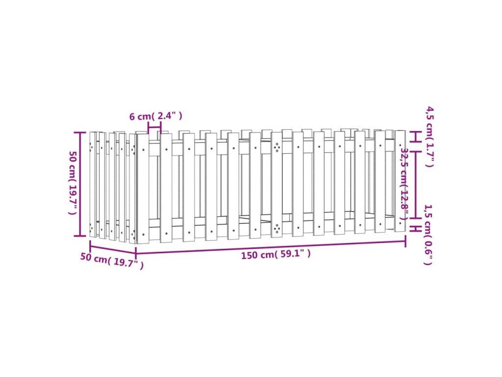 Vyvýšený záhon plotový design 150 x 50 x 50 cm masivní borovice 832492