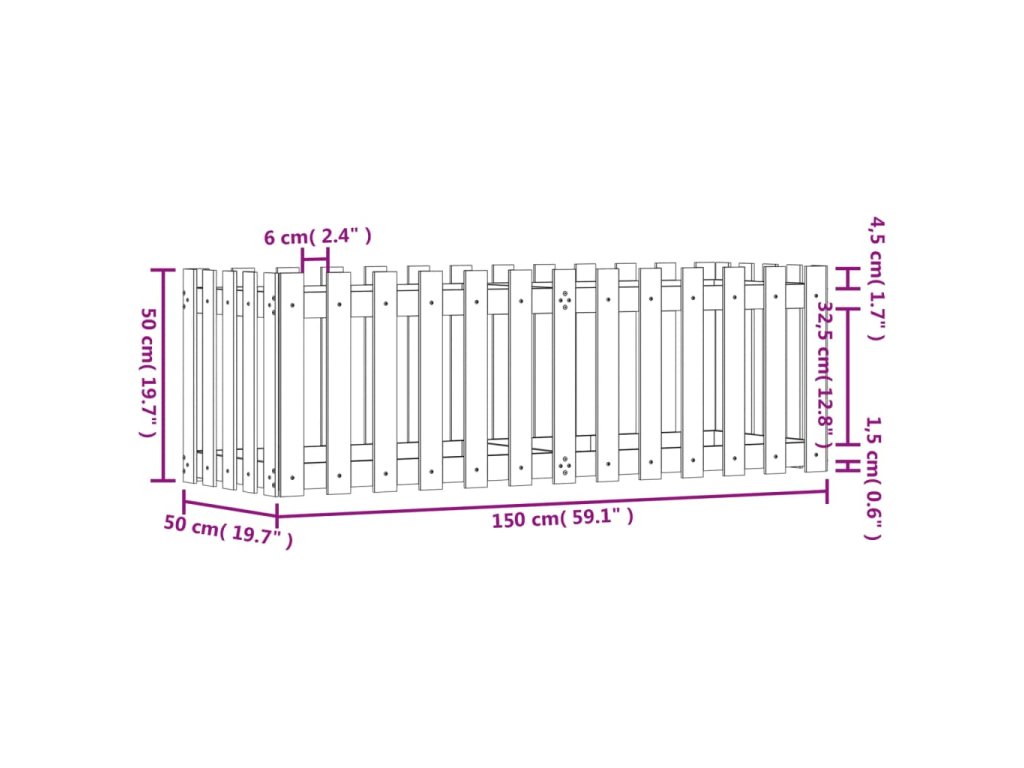 Vyvýšený záhon plotový design černý 150x50x50 cm masiv borovice 832494