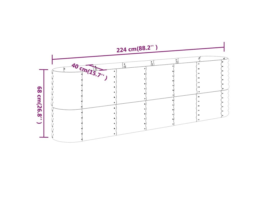 Vyvýšený záhon pozinkovaná ocel 224x40x68 cm stříbrný 318902