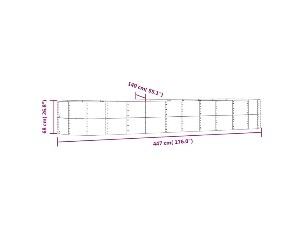 Vyvýšený záhon stříbrný 447x140x68 cm pozinkovaná ocel 319112