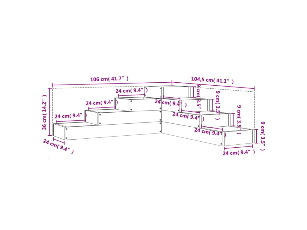 - Rohový design: Tento dřevěný květináč má tvar L a lze jej umístit do rohu balkonů, teras, verand a dalších prostor, abyste plně využili venkovní obytný prostor.