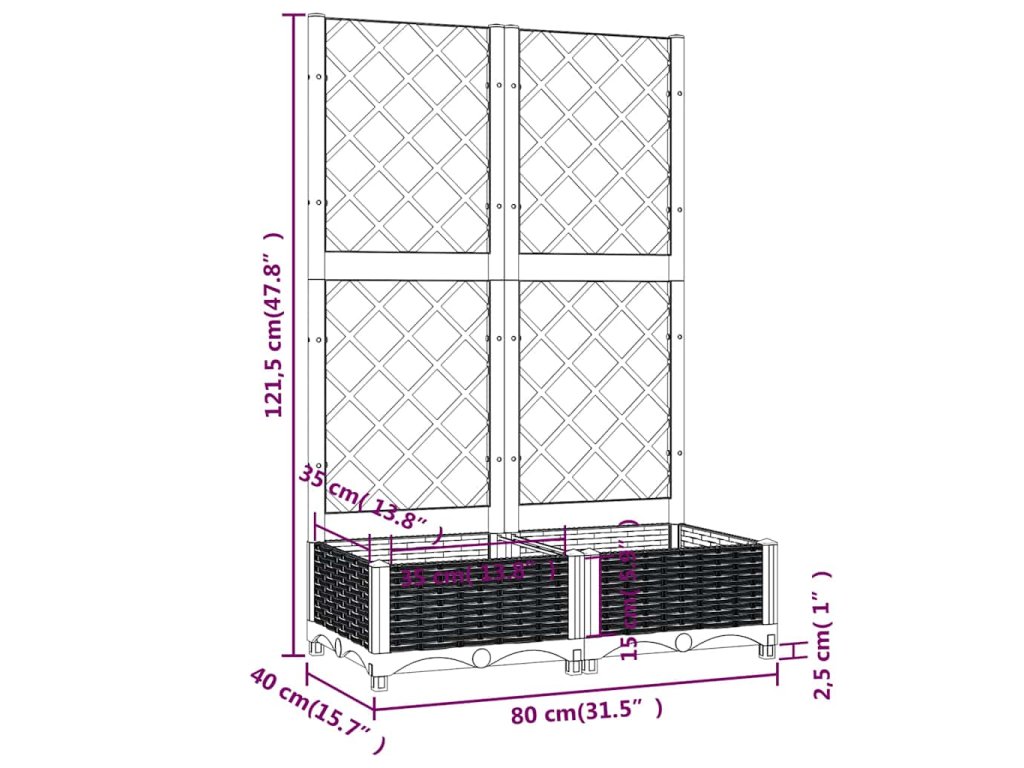 Zahradní květináč s mřížkou modrošedý 80 x 40 x 121,5 cm PP 318250