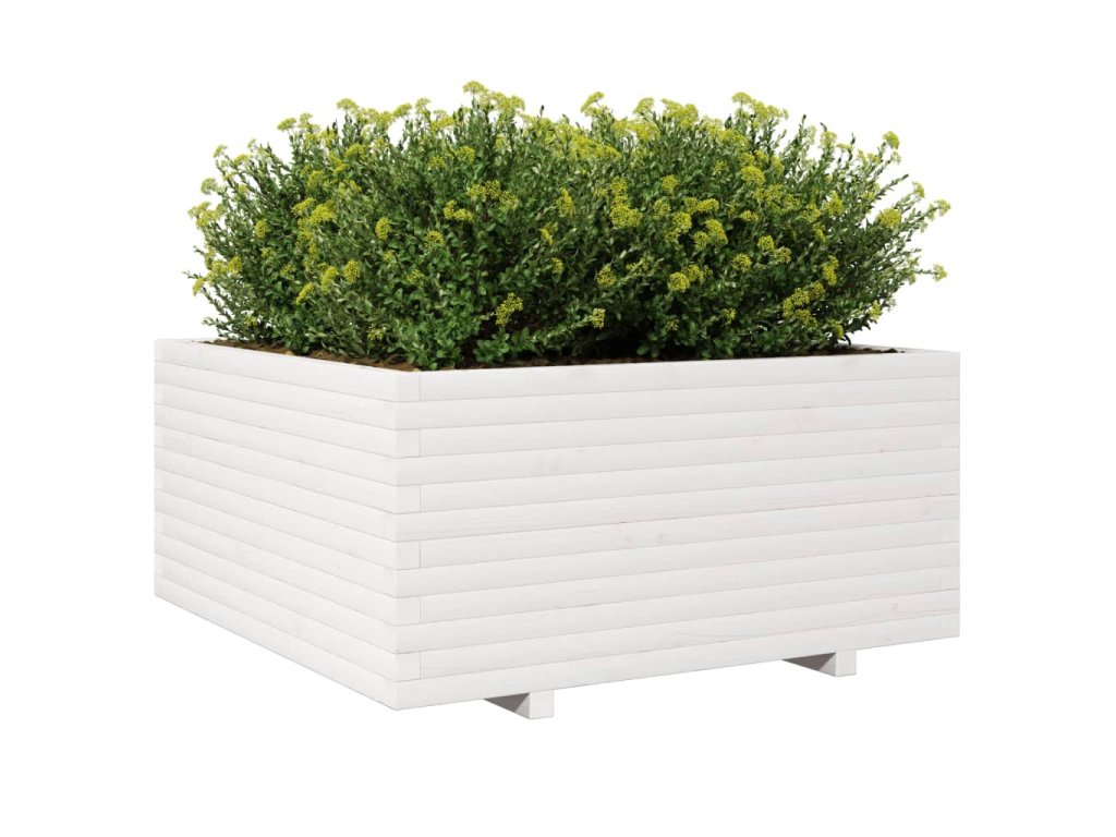 Zahradní truhlík bílý 100 x 100 x 49,5 cm masivní borové dřevo 3282540