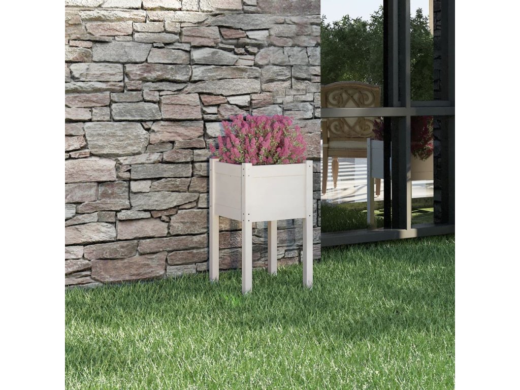 Zahradní truhlík bílý 40 x 40 x 70 cm masivní borovice 810791