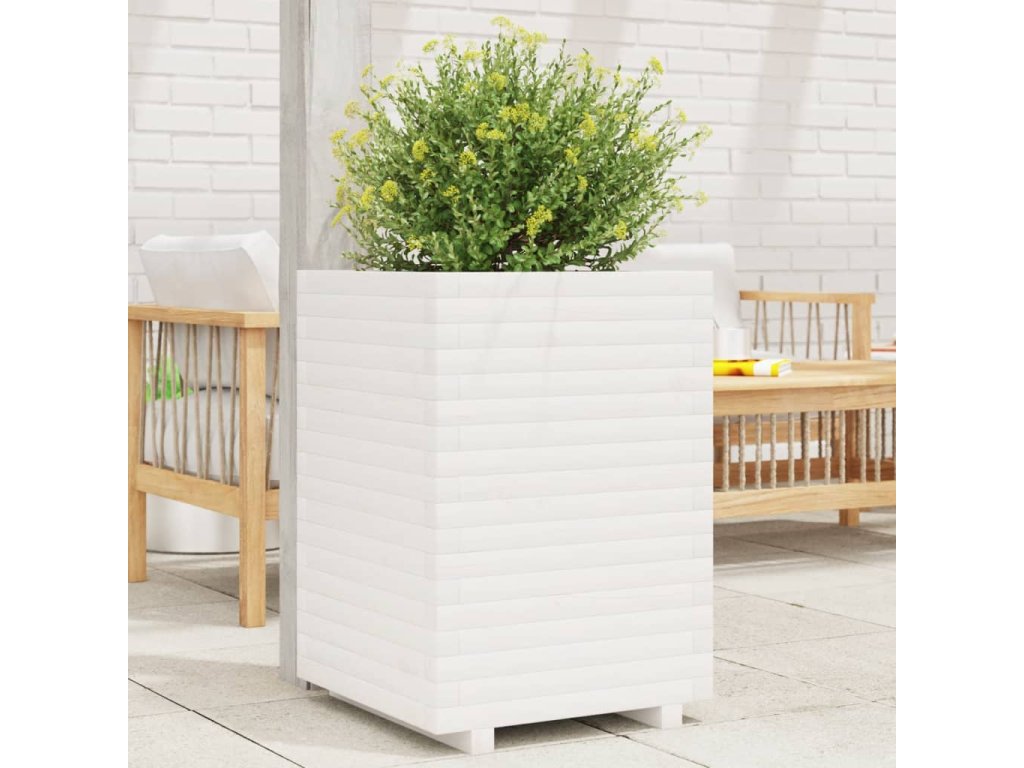 Zahradní truhlík bílý 50 x 50 x 72 cm masivní borové dřevo 3282610