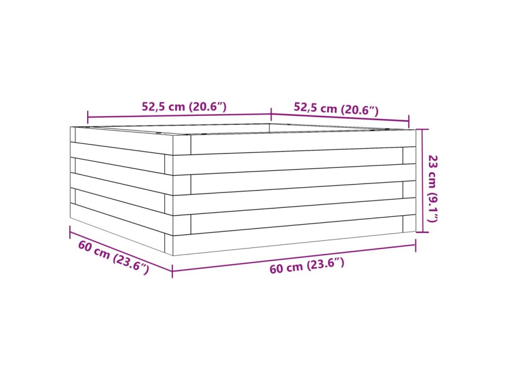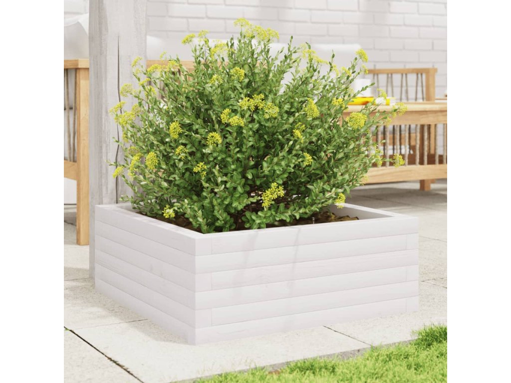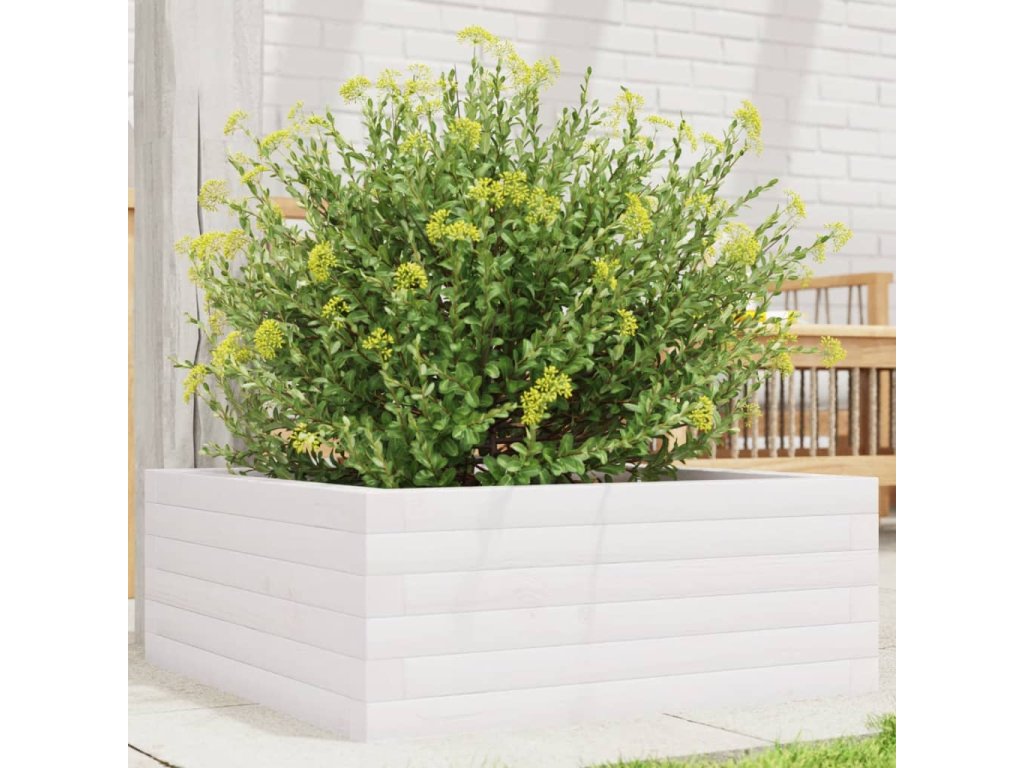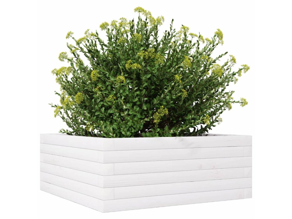 Zahradní truhlík bílý 60 x 60 x 23 cm masivní borové dřevo 847189