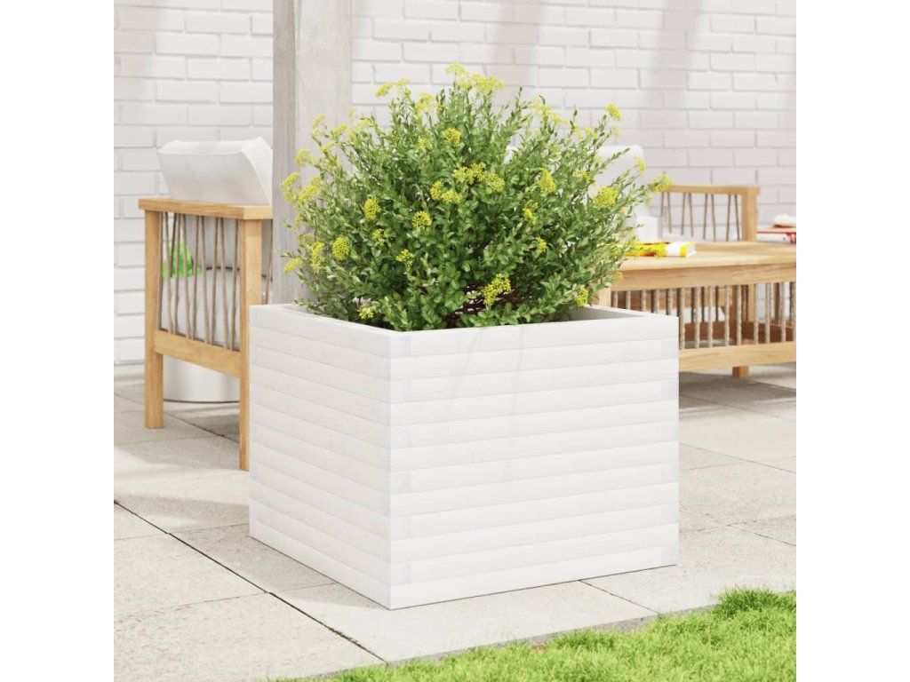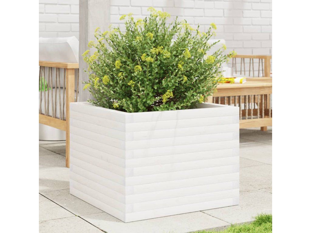 Zahradní truhlík bílý 60 x 60 x 46 cm masivní borovice 3282410
