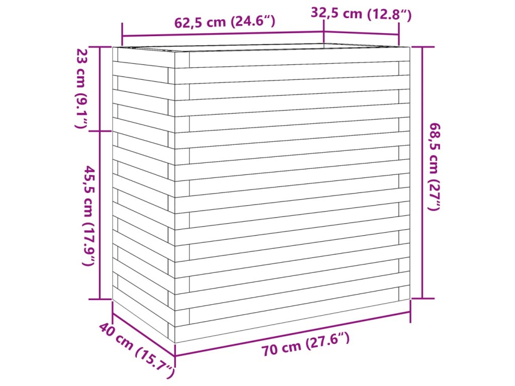 Zahradní truhlík bílý 70 x 40 x 68,5 cm masivní borovice 3282485