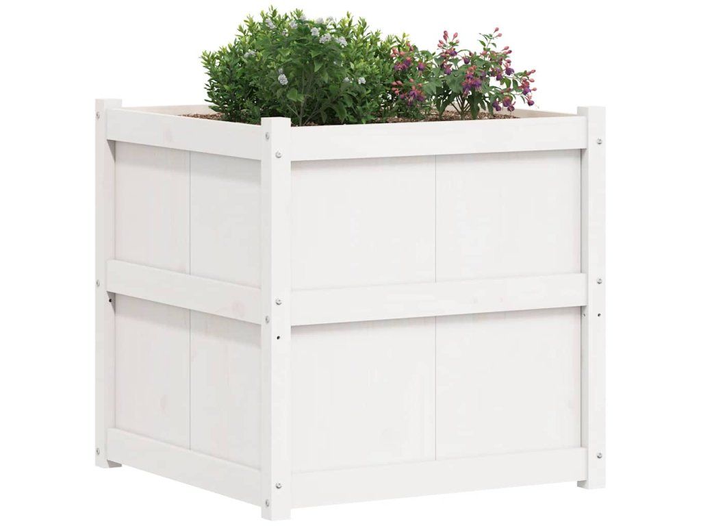 Zahradní truhlík bílý 70 x 70 x 70 cm masivní borové dřevo 837435