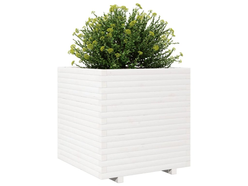 Zahradní truhlík bílý 70 x 70 x 72 cm masivní borové dřevo 3282620