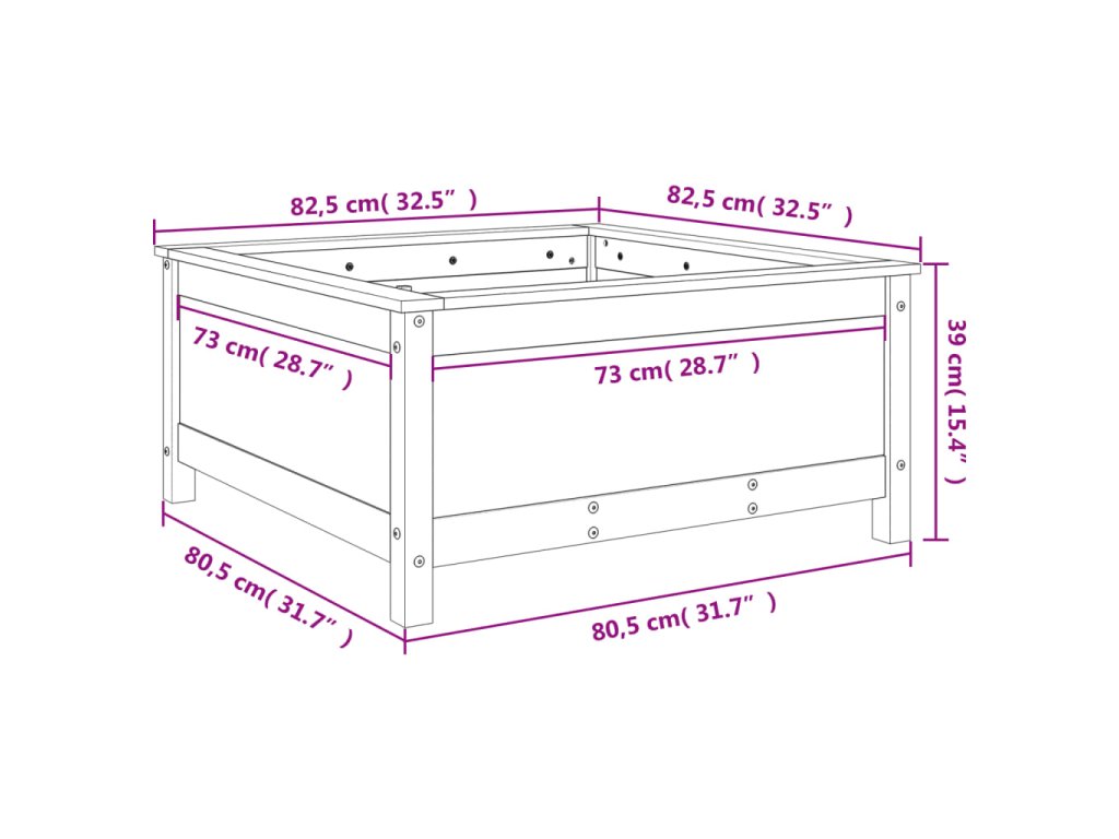 Zahradní truhlík bílý 82,5 x 82,5 x 39 cm masivní borové dřevo 825297