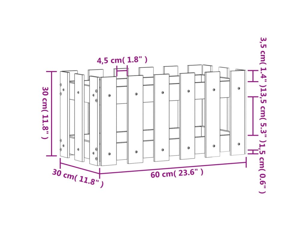 Zahradní truhlík plotový design 60x30x30 cm masivní borovice 832467