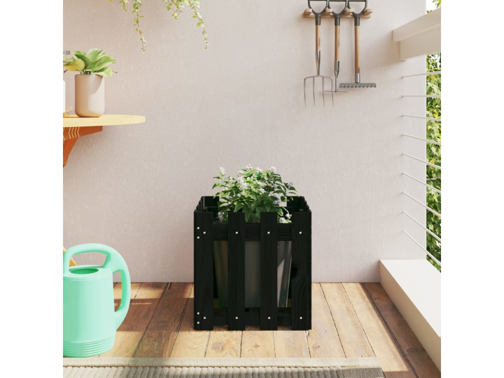 Zahradní truhlík plotový design černý 40x40x40cm masiv borovice 832449