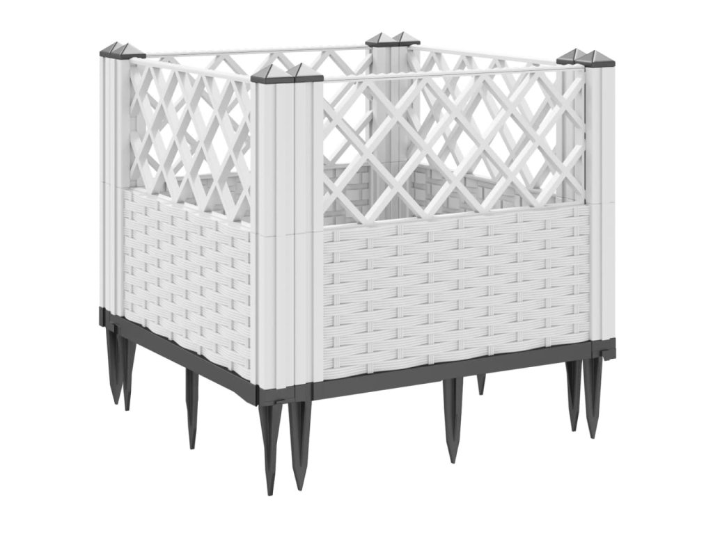 Zahradní truhlík s kolíky bílý 43,5 x 43,5 x 43,5 cm PP 368010