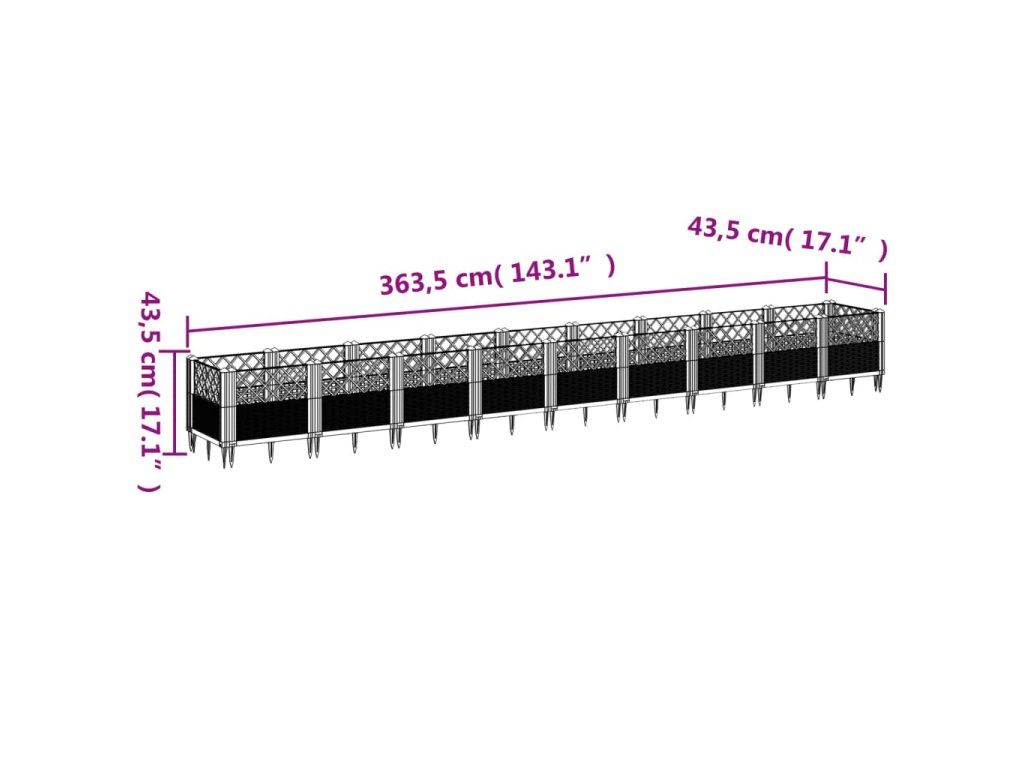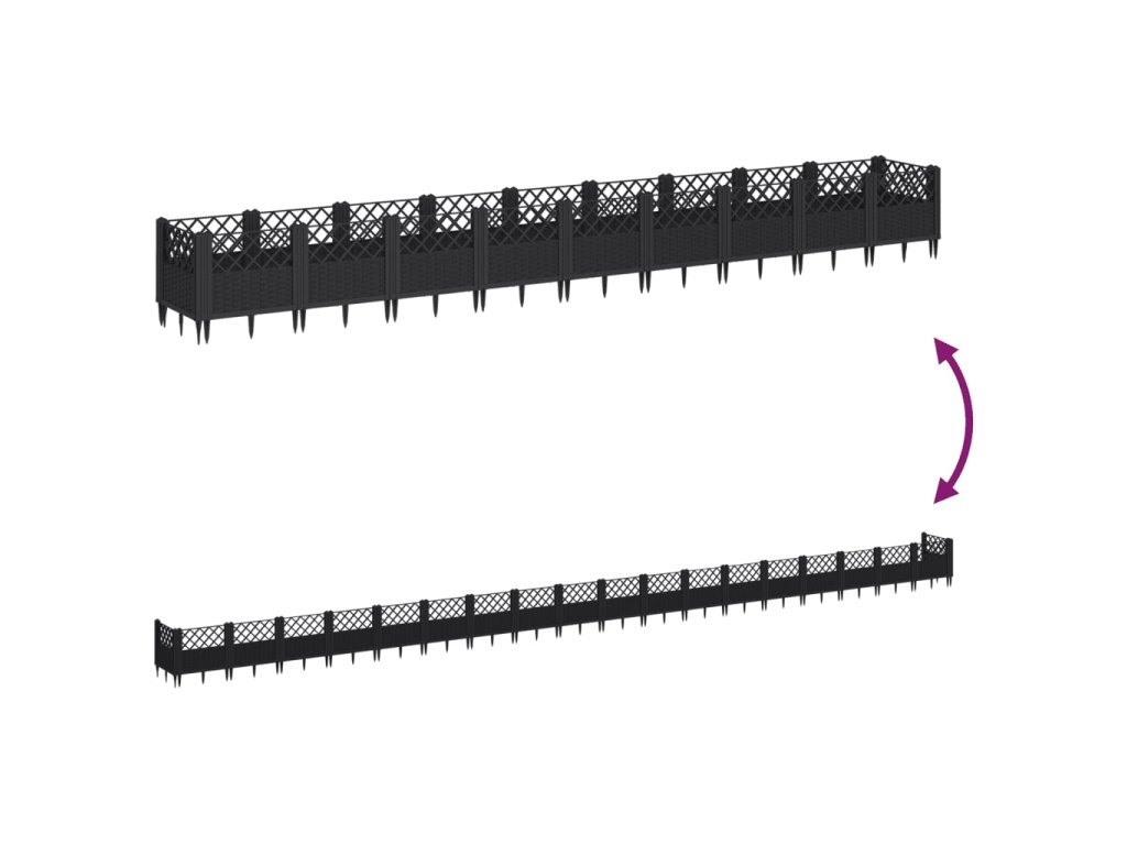 Zahradní truhlík s kolíky černý 363,5 x 43,5 x 43,5 cm PP 368027