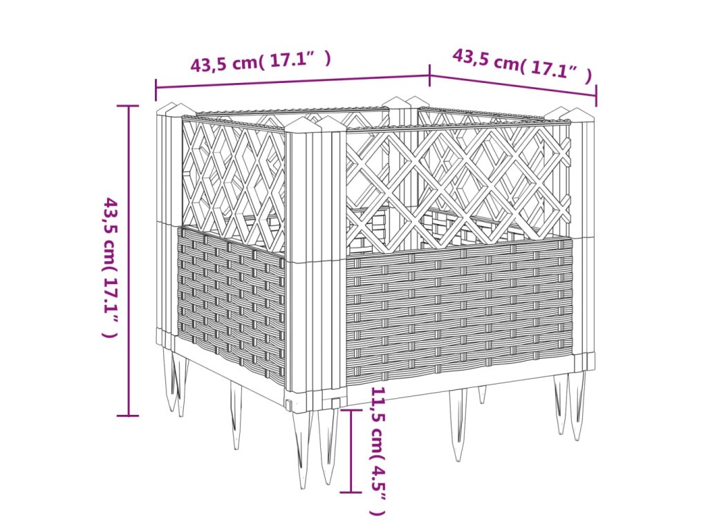 Zahradní truhlík s kolíky hnědý 43,5 x 43,5 x 43,5 cm PP 368006