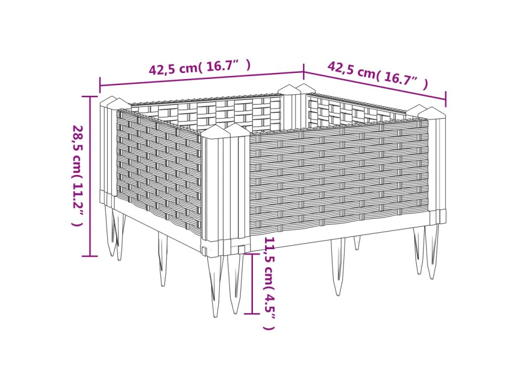 Zahradní truhlík s kolíky světle šedý 42,5 x 42,5 x 28,5 cm PP 368003