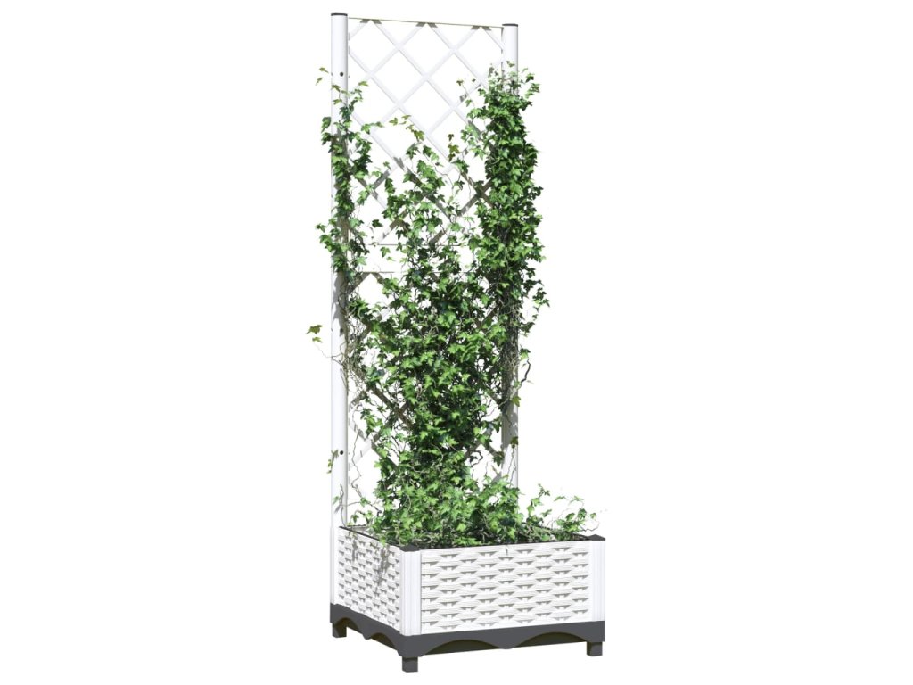 Zahradní truhlík s treláží bílý 40 x 40 x 121,5 cm PP 153279