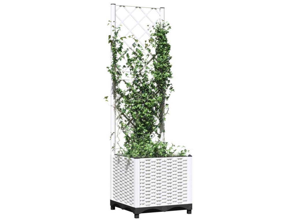 Zahradní truhlík s treláží bílý 40 x 40 x 136 cm PP 153280