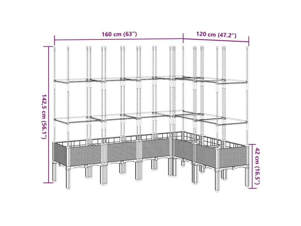 - Praktický design: Ideální dno pomáhá zadržovat vlhkost a umožňuje snadný odvod vody. Vestavěná treláž navíc nabízí oporu pro růst popínavých rostlin, jako jsou rajčata, hrášek nebo růže.